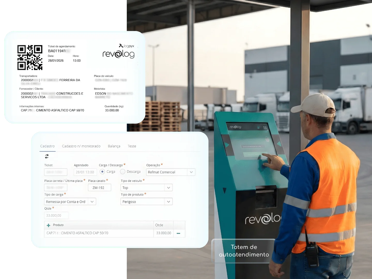 Dê autonomia ao motorista e reduza a dependência de operadores na portaria. Com processos self-service, você acelera o check-in e garante que a coleta de dados seja padronizada e livre de erros de digitação.