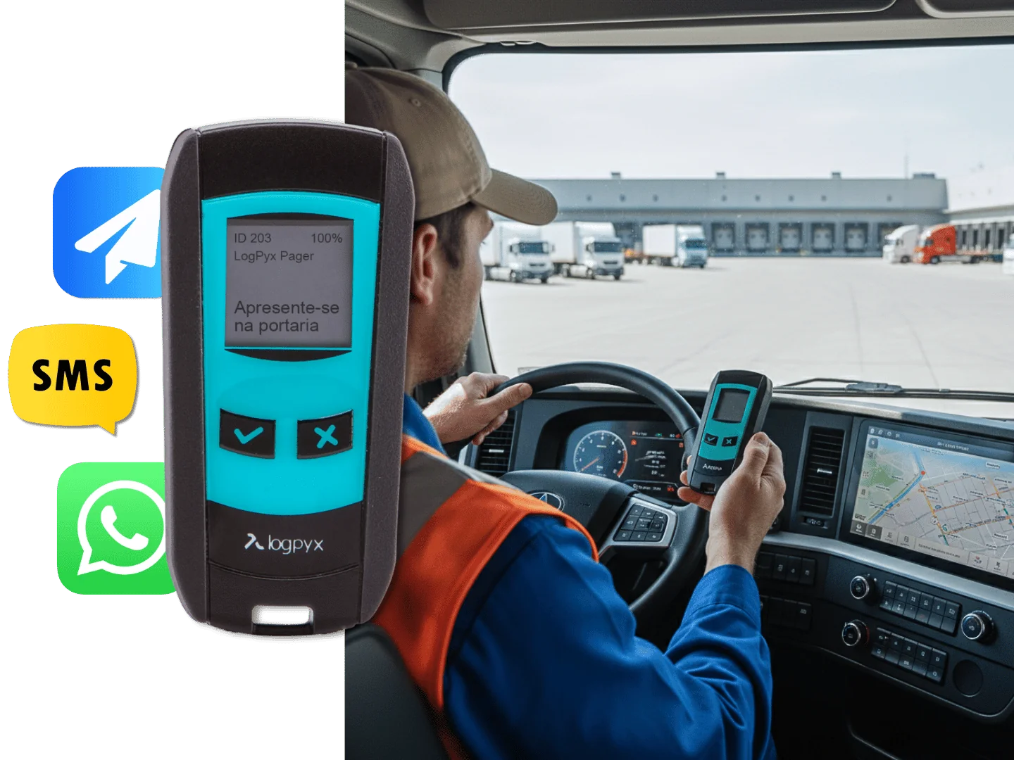 Mantenha o pátio organizado e silencioso eliminando o uso de rádios. Comunique chamadas para docas e instruções operacionais de forma rastreável e instantânea diretamente no dispositivo do condutor.
