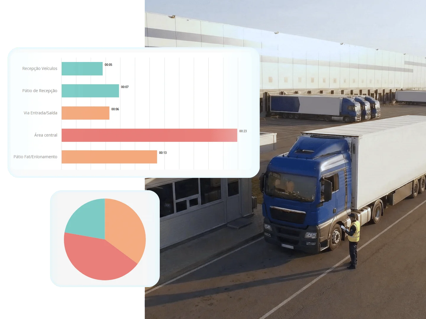 Reduza buscas manuais no pátio e automatize a confirmação de eventos críticos por meio de tecnologias de alta precisão.